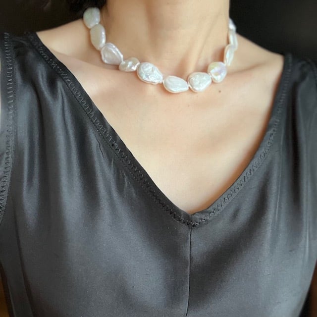 一粒ずつ異なるナチュラルな風合いのパールが織り成すネックレス。