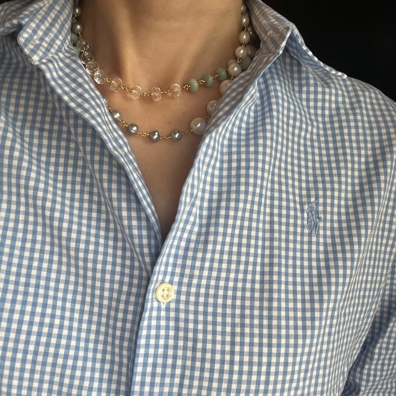 シャツやTシャツには2連にしてボリューム感を持たせたりと、