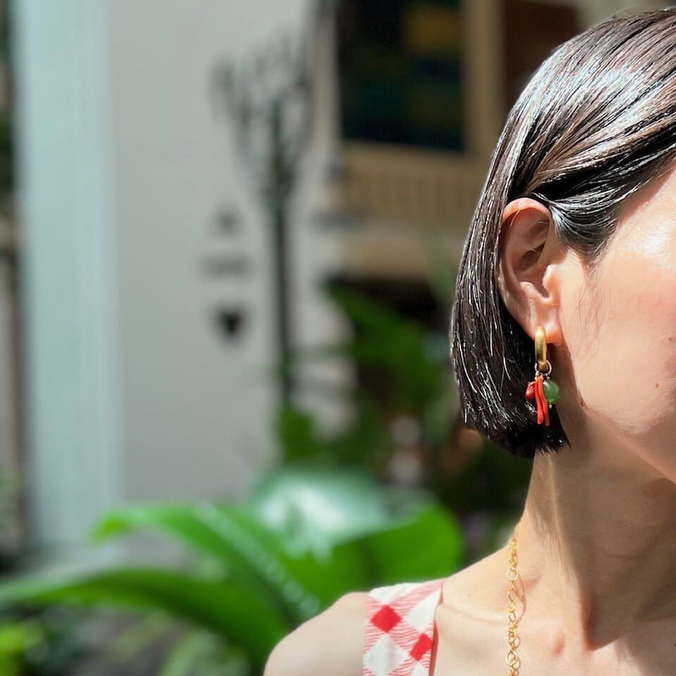イタリア・サルデーニャ島沖の本サンゴを合わせたフープピアス。