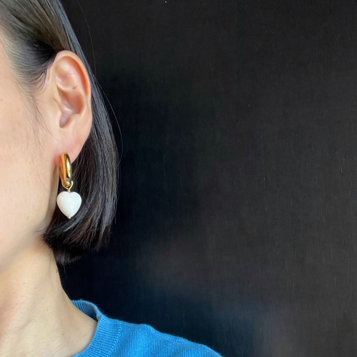 ぷっくりとしたハートチャームがアクセントになるピアス。