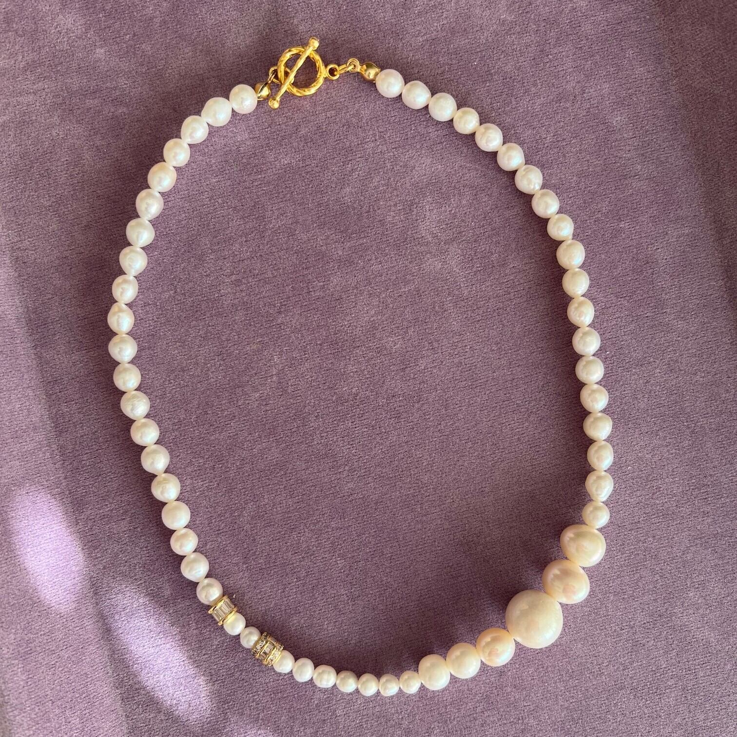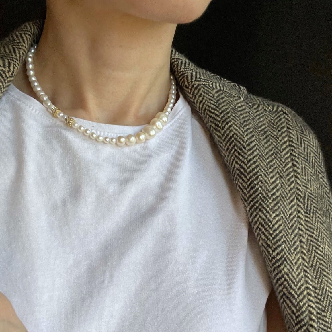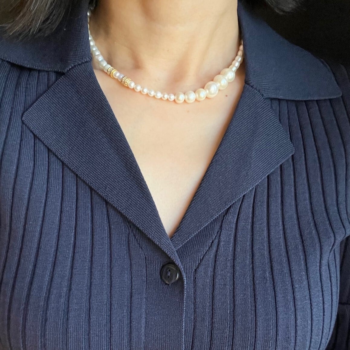 いつものパールネックレスとはひと味違う、アクセントになるデザインをお楽しみください。