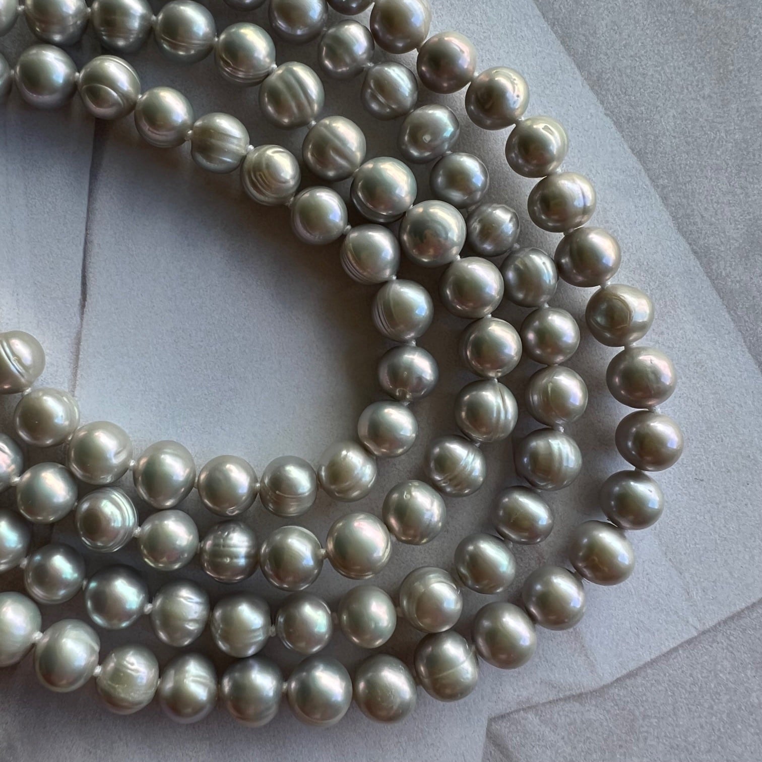 グレー~シルバーの絶妙なカラーのロングネックレスは、