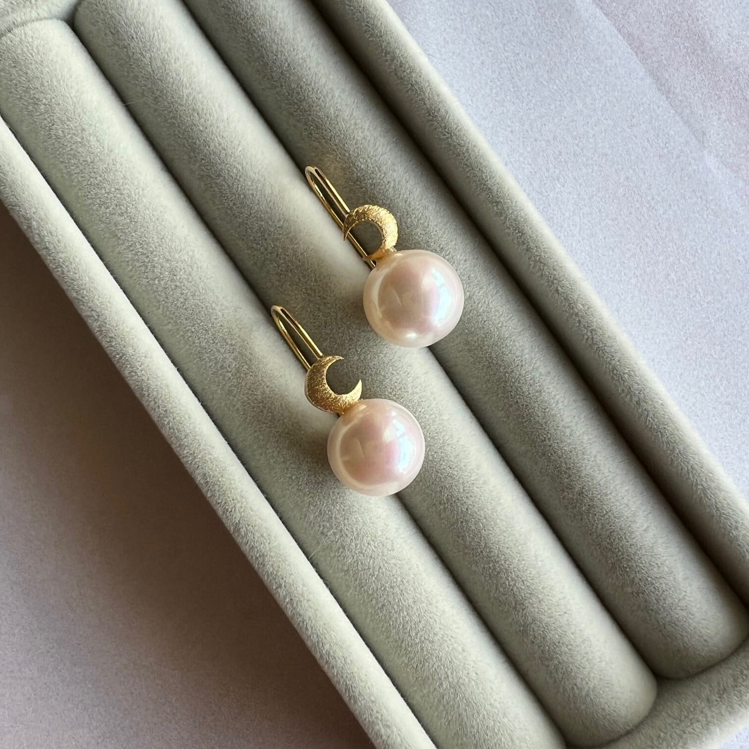 マットゴールドの三日月モチーフに照りの良いホワイトパール。