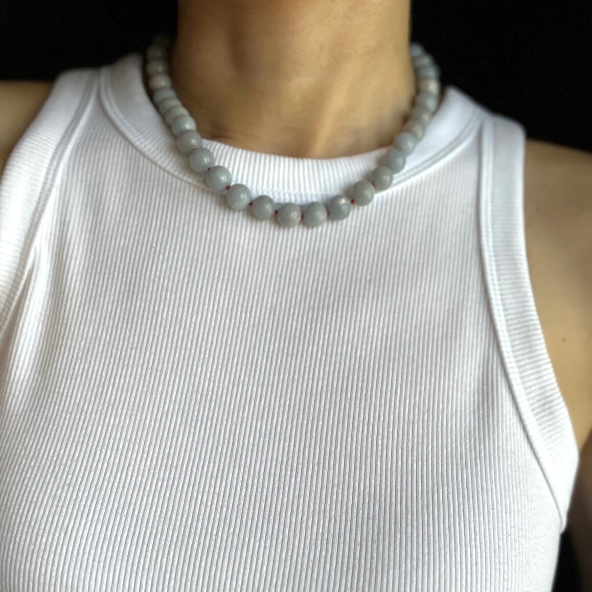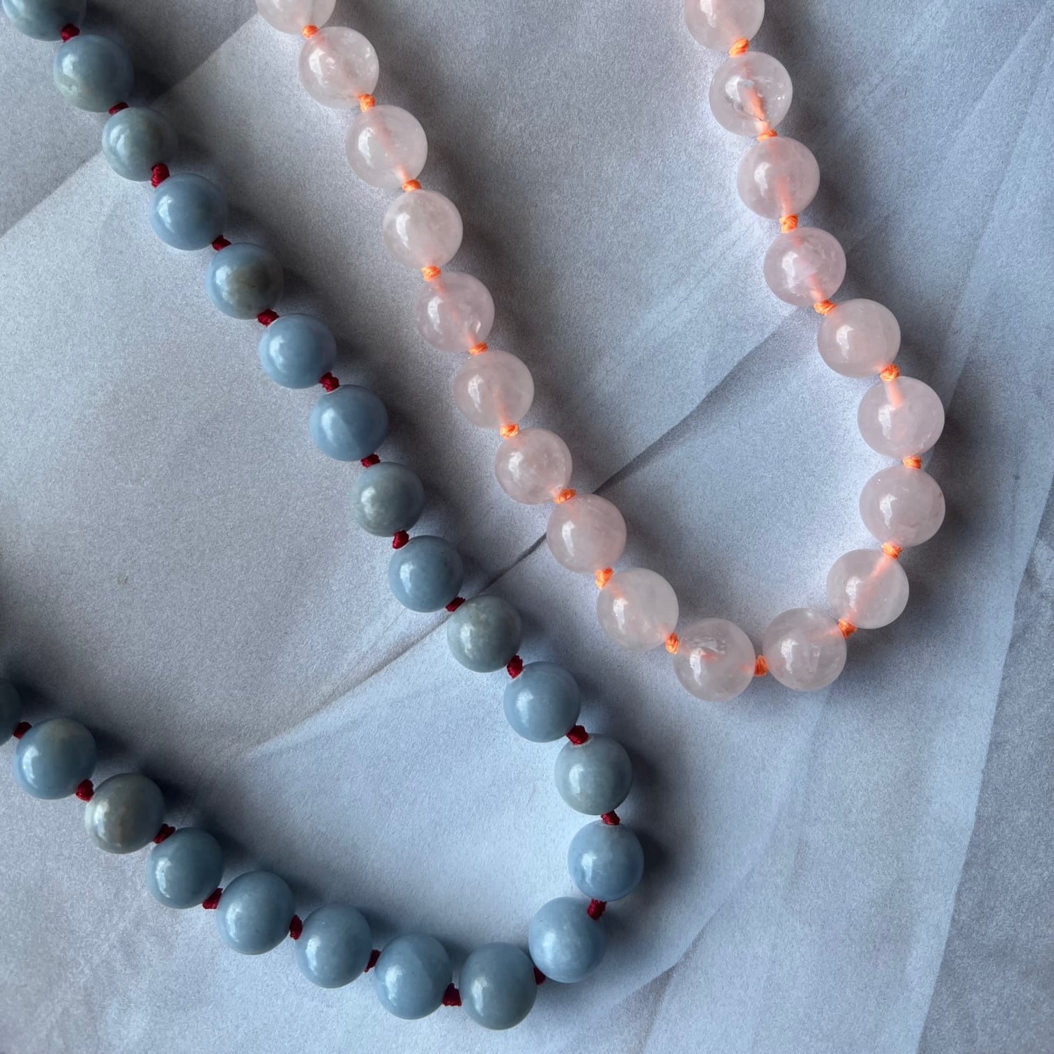 糸の色と着けた時のしなやかさが出るよう、一粒ずつ繋いで仕上げました。