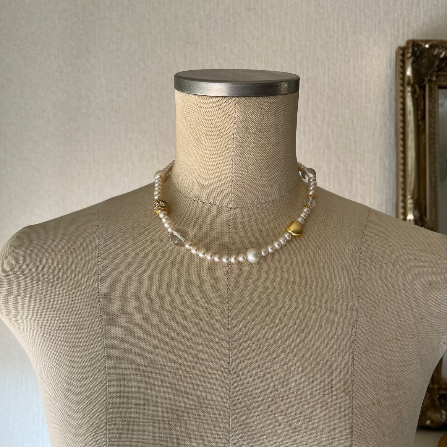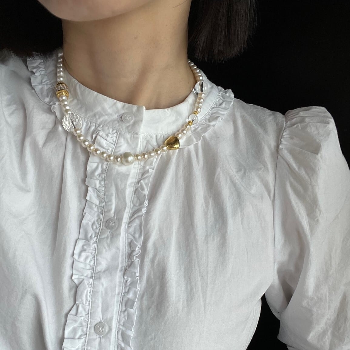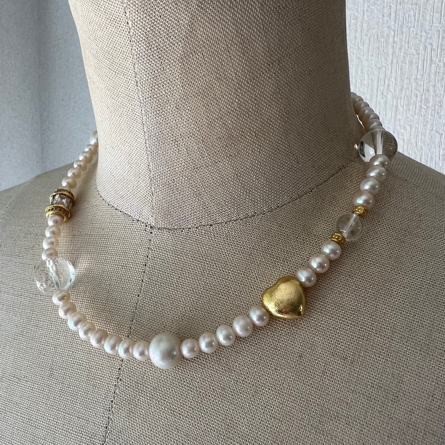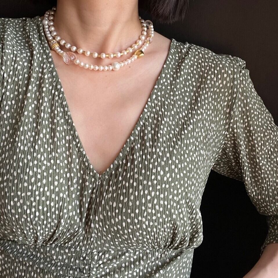 ビジューやハートビーズが織り成すアクセントになるネックレス。