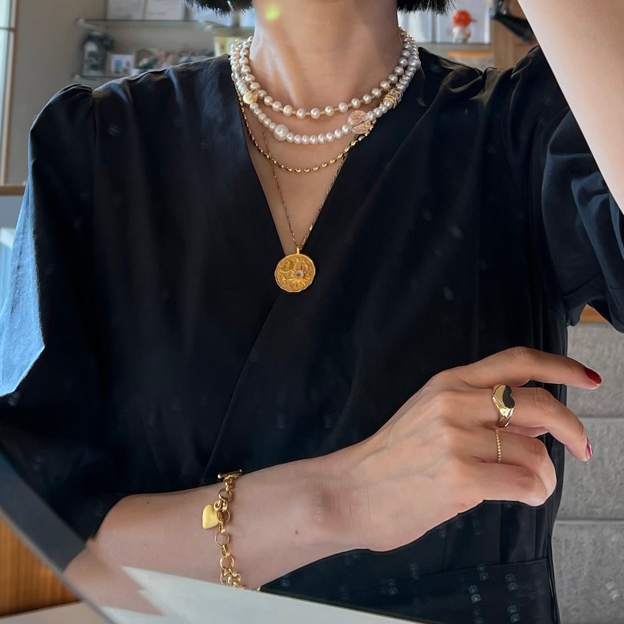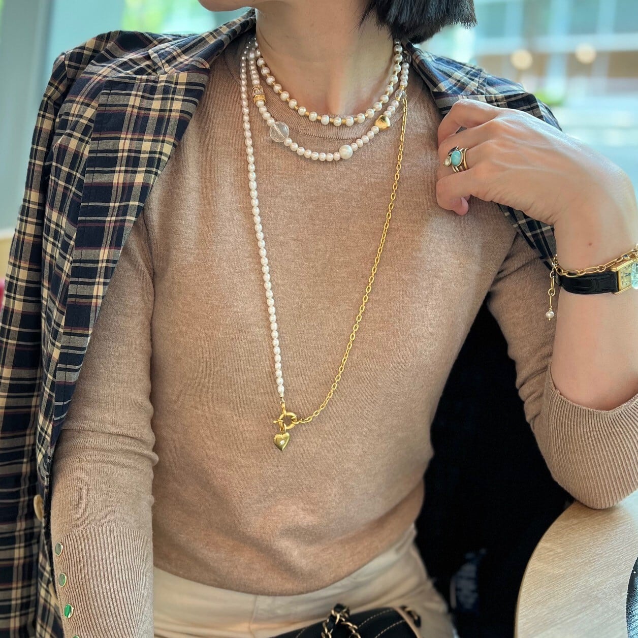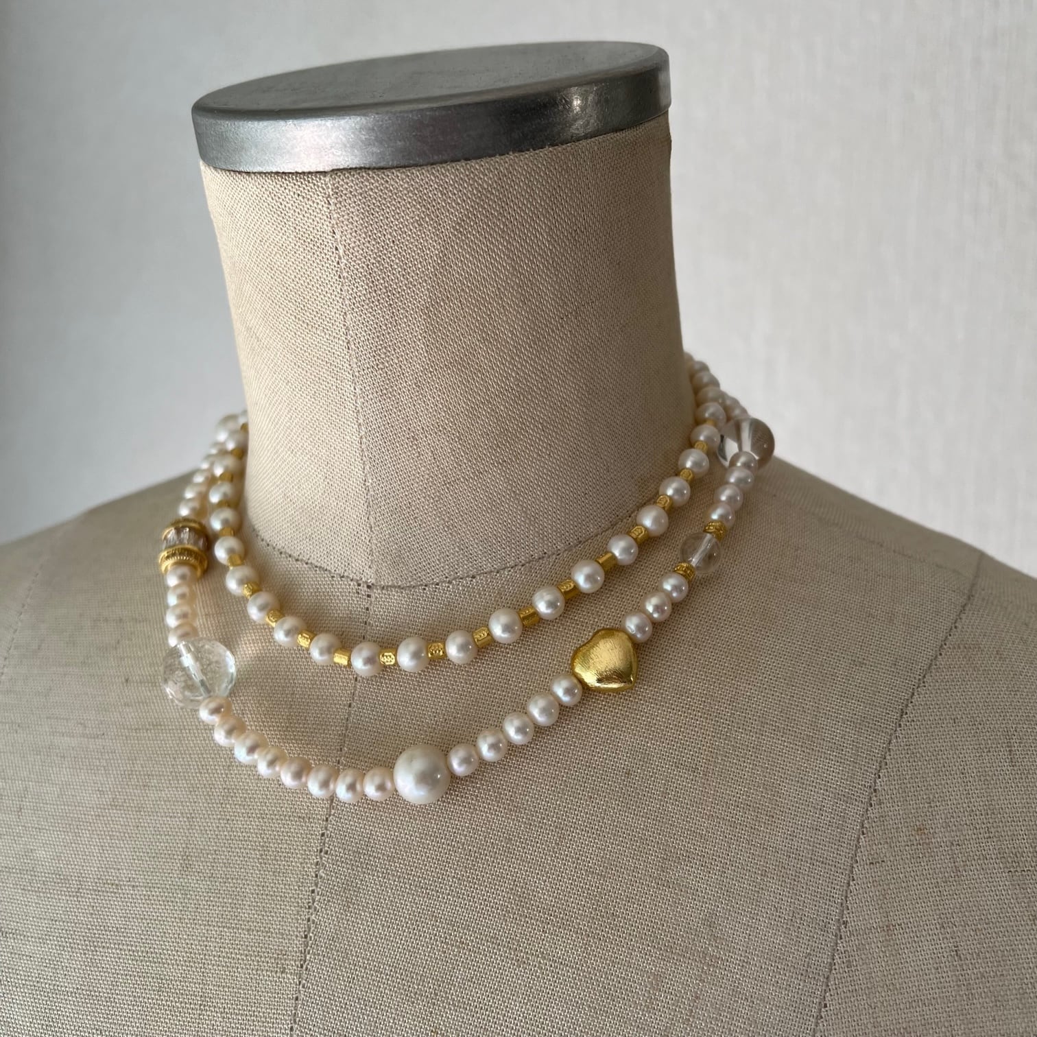 ビジューやハートビーズが織り成すアクセントになるネックレス。