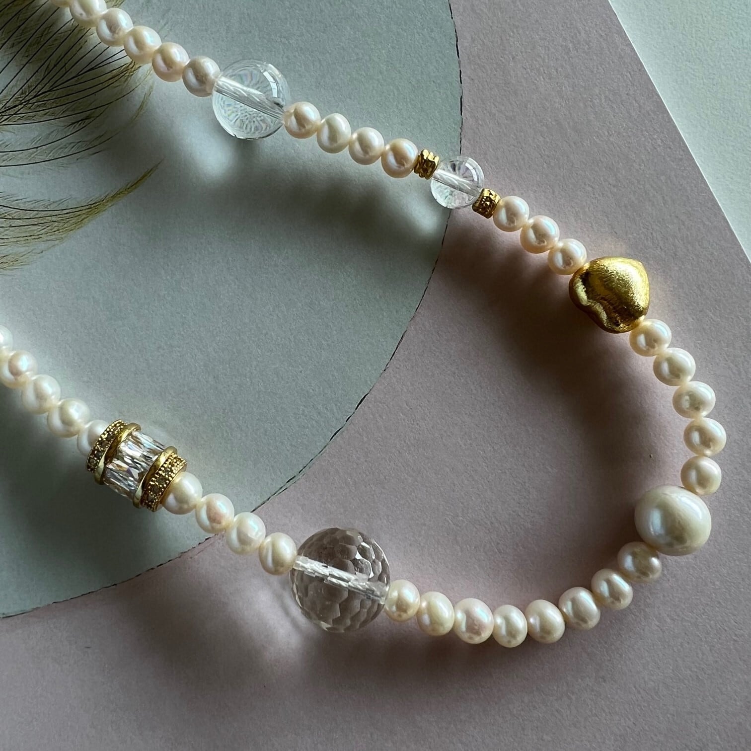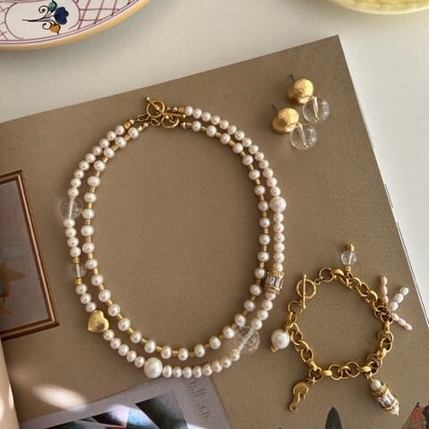 ※こちらで使用している淡水パールやクリスタルは、