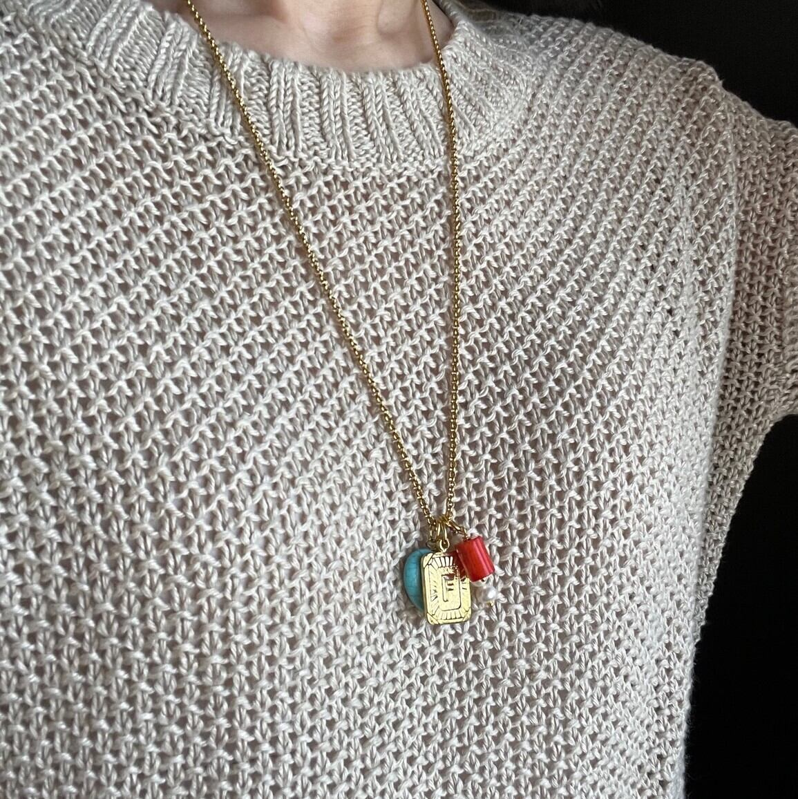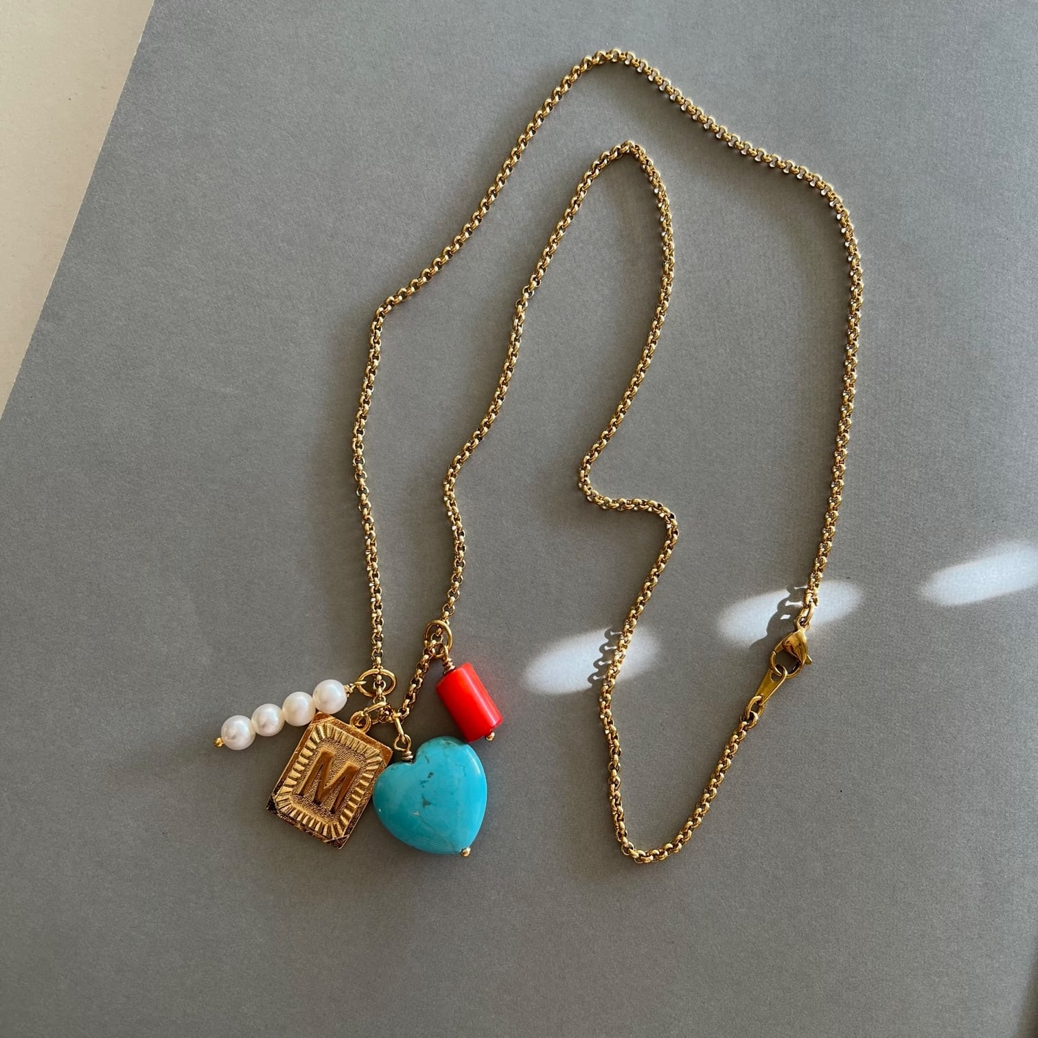 チャームを引きたてる明るいシャイニーゴールドのチェーンを使い、