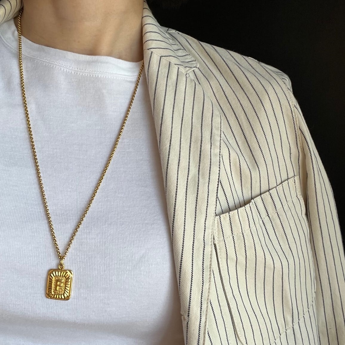 艶やかなゴールドプレートにしっかりとしたフォントのイニシャルで、
