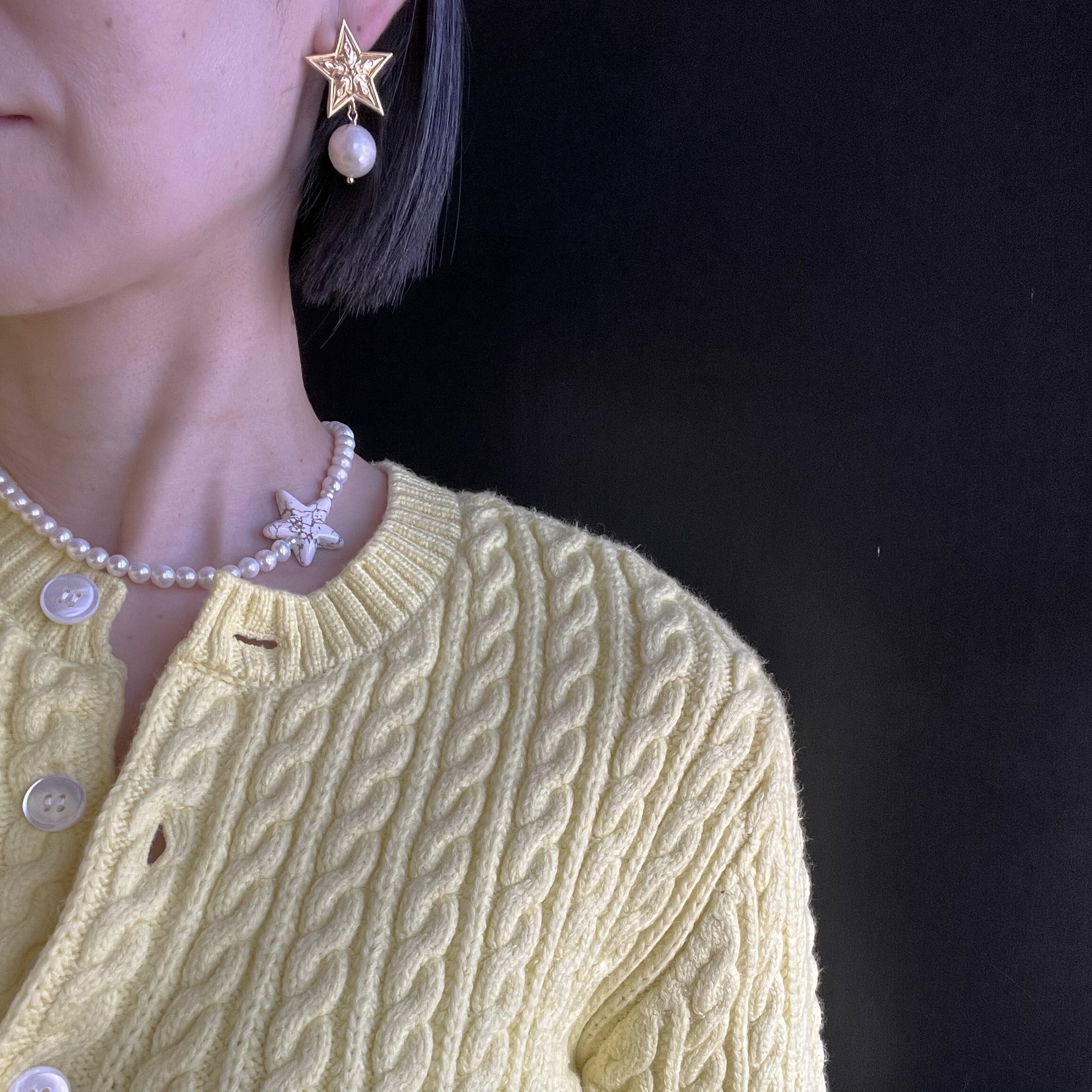 顔周りを明るく照らす星のピアス。