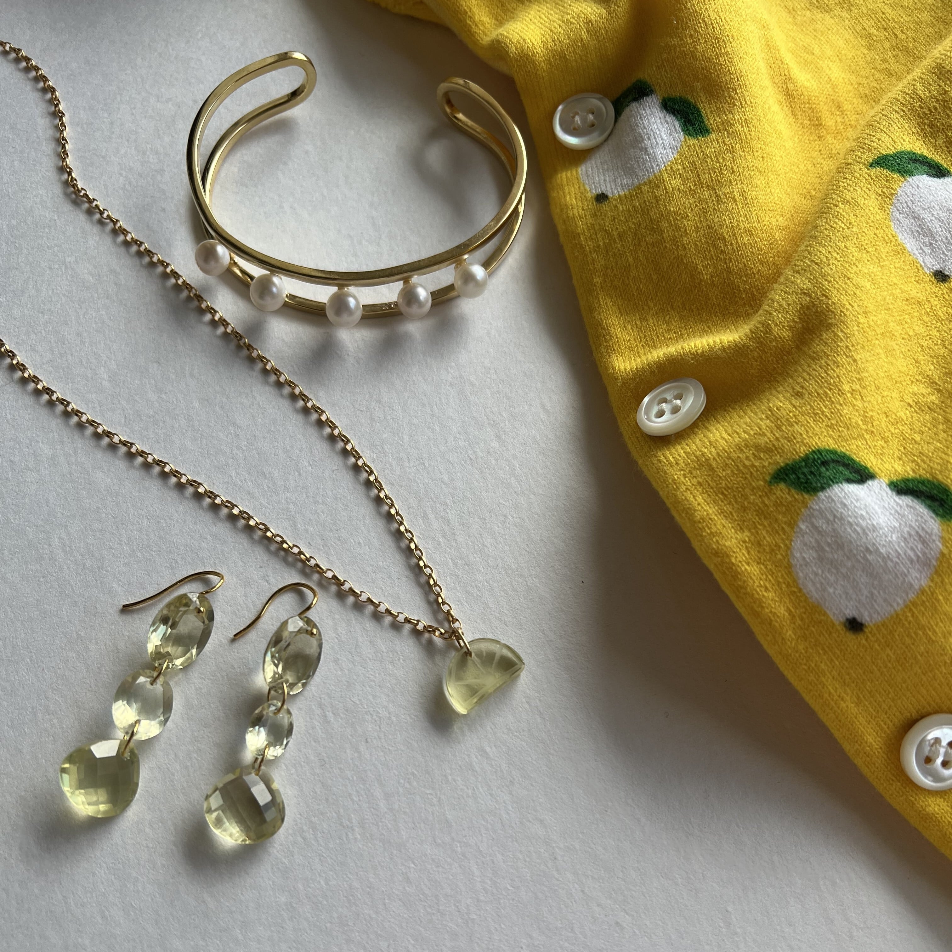 やさしく繊細、そして上品に揺れるレモンクォーツのピアス。