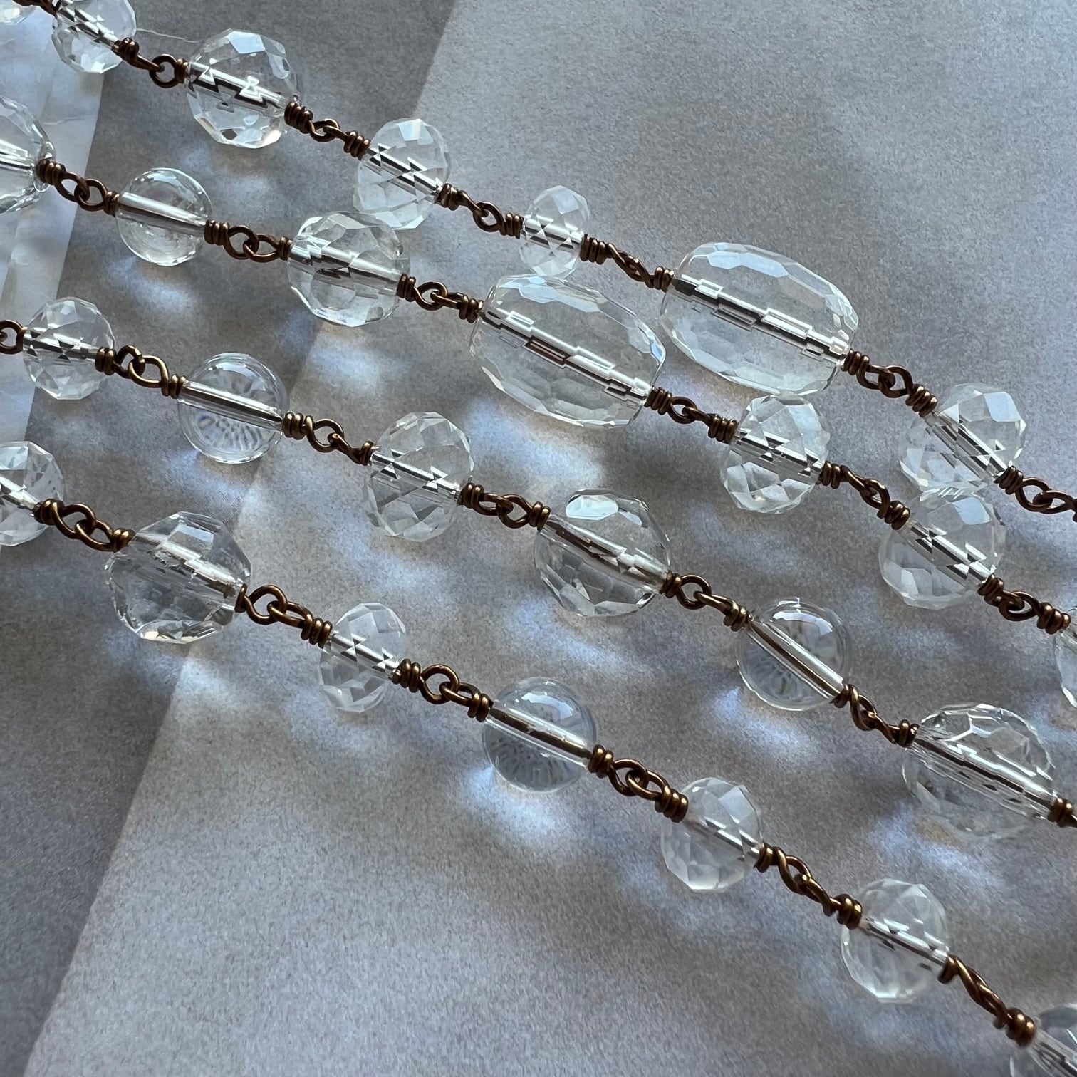 形やカットが異なるクリスタルを合わせたロングネックレス。